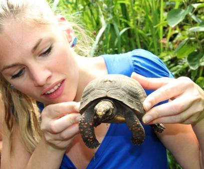 Bereits gestern in der Auffangstation für Exoten, die verkauft werden sollten, habe wir uns mit dem Thema außergewöhnliche Haustiere beschäftigt, und was dieser Wunsch für die in Freiheit lebenden Tiere bedeutet: Sie werden ihrer natürlichen Umgebung entrissen, oft misshandelt, damit sie nicht flüchten können und dann ins Ausland verschifft, um dort in irgendeinem Käfig oder Aquarium zu enden, wenn sie nicht schon auf dem Weg gestorben sind. Umso schöner finde ich es, heute auf ein Haustier zu stoßen, das zwar auch als Exot gilt, aber offiziell gezüchtet werden darf. Schildkröten faszinieren durch ihre Langsamkeit, ihren Panzer und die großen Augen. Was gerne vergessen wird: Mit ihrem gemütlichen Lebenswandel haben sie es geschafft, bereits seit 200 Millionen Jahren die Erde zu bevölkern. Damit sind sie die ältesten Wirbeltiere unseres Planeten. Wer sich überlegt, so ein Tier anzuschaffen, sollte unbedingt genau auf den Händler achten. Denn auch hier gibt es immer wieder schwarze Schafe, die versuchen illegal eingeführte Tiere zu verkaufen. Meine kleine Schildkröte von heute, die ich in Kolumbien treffe, weckt meine Vorfreude auf Galapagos. Dort hoffe ich, schon ganz bald auf die berühmten Riesenschildkröten in freier Wildbahn zu treffen. Drückt mir die Daumen!