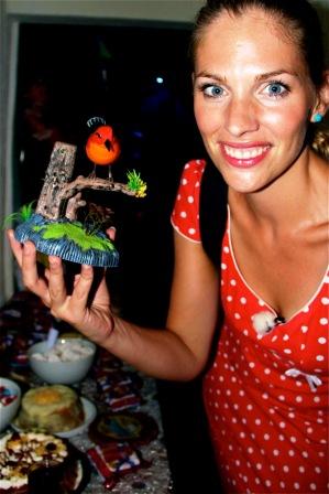 Das Medium, das wir gestern besucht haben, kümmert sich um alle Lebensbereiche der Menschen. Neben ihm arbeitet eine Frau, die sich darauf spezialisiert hat, kinderlosen Paaren Kinder zu schenken. Sie arbeitet ebenfalls als Medium und bietet verschiedene Rituale an, mit denen sie auf wundersame Weise dabei hilft, Babys zu bekommen. Es gibt viele Brasilianer, die dieser Frau sehr dankbar sind, da sie den großen Wunsch nach Nachwuchs erfüllt hat. Aus Dankbarkeit bekommt sie immer wieder Geschenke, die sie auf einem Gabentisch aufgereiht hat. Es sieht aus wie bei einem Kindergeburtstag, nur dass die Menge der Geschenke deutlich größer ist. Neben Torten, Spielzeug und Blumen finde ich diesen kleinen Vogel – Euer Tier des Tages. Mit diesem beeindruckenden Besuch verlassen wir Rio de Janeiro und werden uns morgen aus einer deutschen Kolonie in Brasilien melden – aus Pomerode! Das heißt für uns: Wir steigen gleich in den Flieger nach Florianopolis, also bis morgen!
