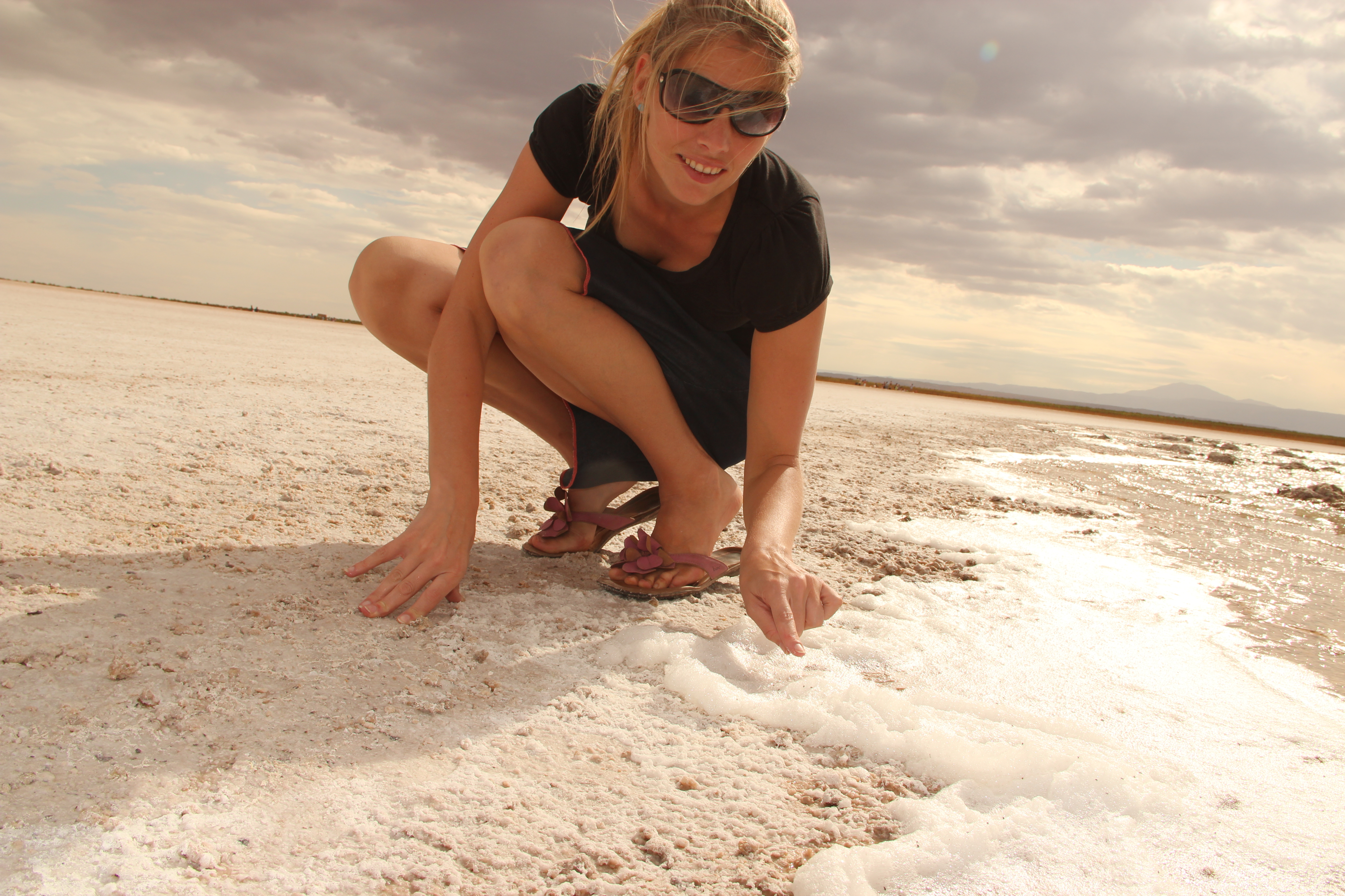 Wir lösen das Rätsel von gestern: Warum tauchen die bachstelzenartigen Vögel inmitten der trockensten Wüste der Welt plötzlich an einem Salzsee auf? Sie haben Futter gefunden! Und zwar Fliegen! Hier im Schaum des Salzsees scheint es Bakterien zu geben, von denen sich die Fliegen ernähren. Sie hängen richtig fest im Schaum und fliegen kaum. Das wiederum ist ein gefundenes Fressen für die Vögel! Für sie bedeutet der Schaum an diesem Salzsee einen reich gedeckten Tisch in der sonst so kargen Wüstenlandschaft. Für sie muss es sein, wie Weihnachtsgans, Osterschmaus und das erste Eis des Sommers zusammen. Schon erstaunlich zu sehen, dass das bisschen Wasser, was hier ist, direkt für Leben sorgt: Im Wasser entstehen Bakterien, die ernähren die Fliegen, die wiederum von Vögeln verzehrt werden. Wer wohl kommt, um die Vögel zu holen? Wir holen uns jedenfalls erst mal was zu trinken, denn wir können von dem Salzsee nicht trinken – und mir ist: trocken.